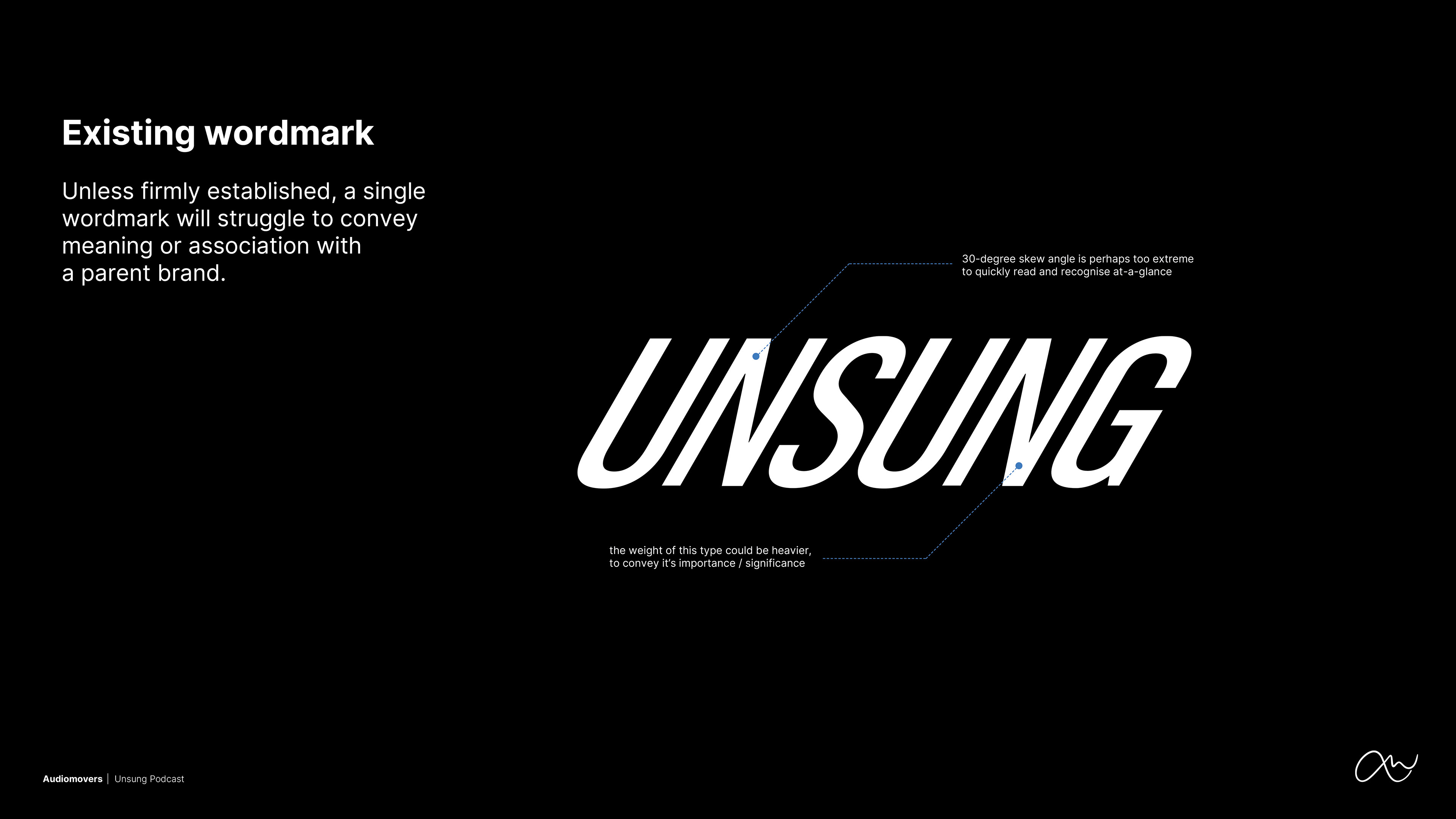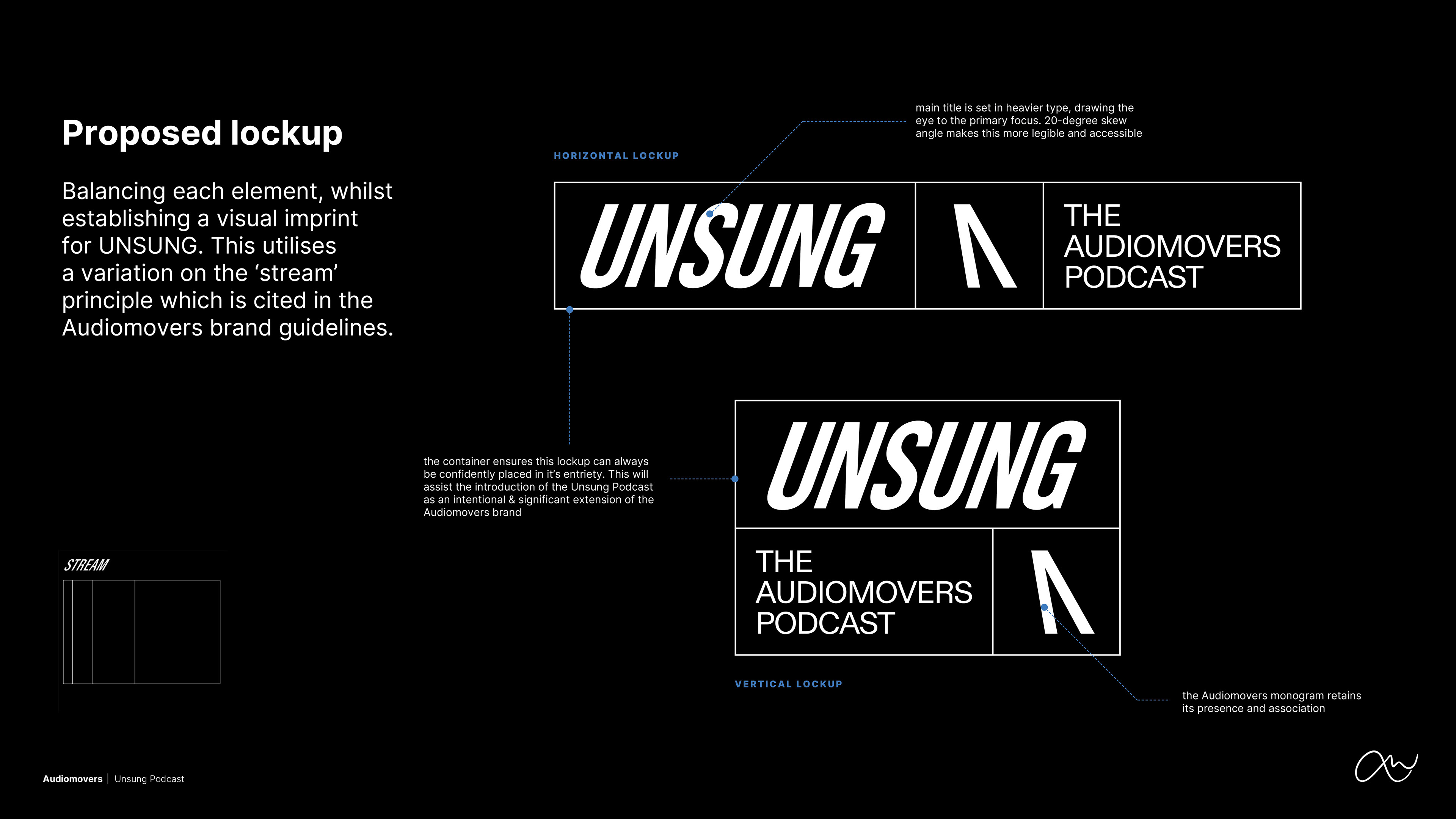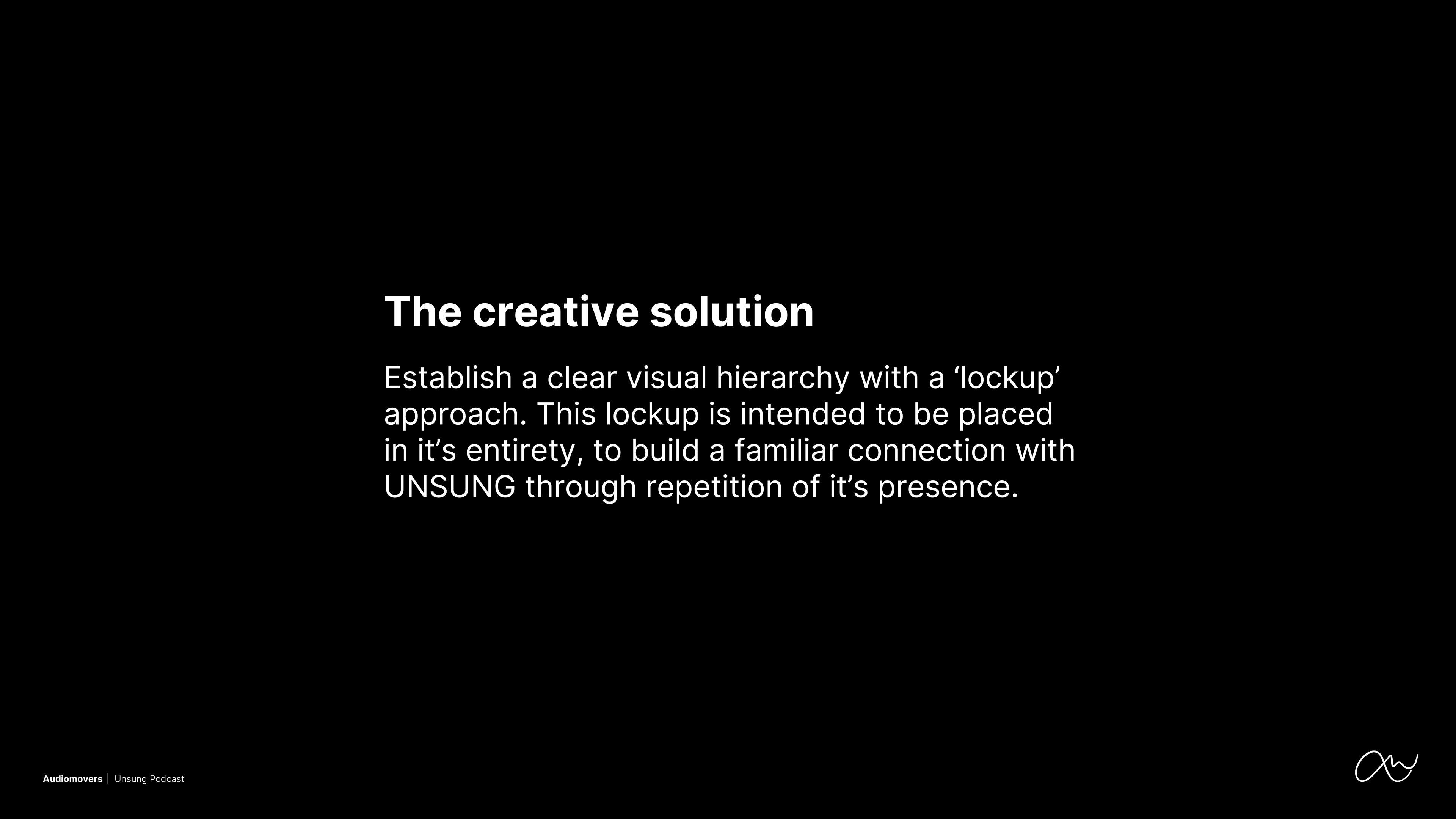Establish 'UNSUNG' as a familiar extension of the Audiomovers brand via the creation of a recognisable logo.
