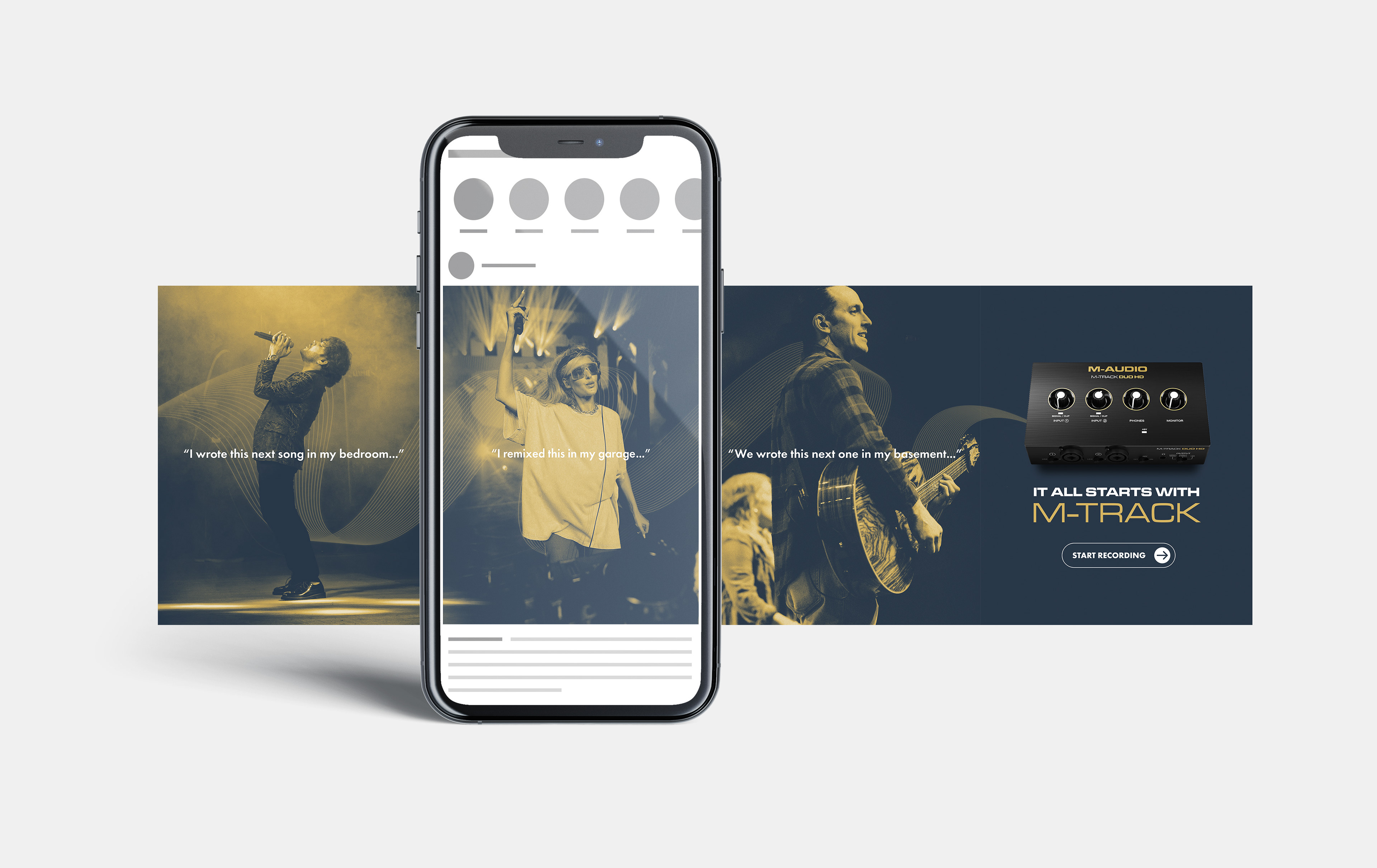 Create an accessible campaign identity which resonates with a beginner. This product is aimed at capable musicians who have yet to venture into recording.